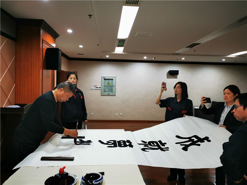 我们作为文艺工作者,一定要牢记习近平总书记的嘱托,坚持与时代同步代,坚持以人民为中心,坚持以精品奉献人民,坚持用明德引领风尚。努力为基层员工抒情,为基层员工抒怀,为弘扬中华民族优秀传统文化,普及提高书法艺术,为实现中华民族伟大复兴的中国梦贡献力量。祝南钞公司全面发展,再创辉煌!
